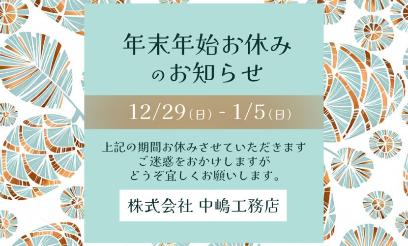 弊社では、誠に勝手ながら下記日程を年末年始の休業とさせていただきます。